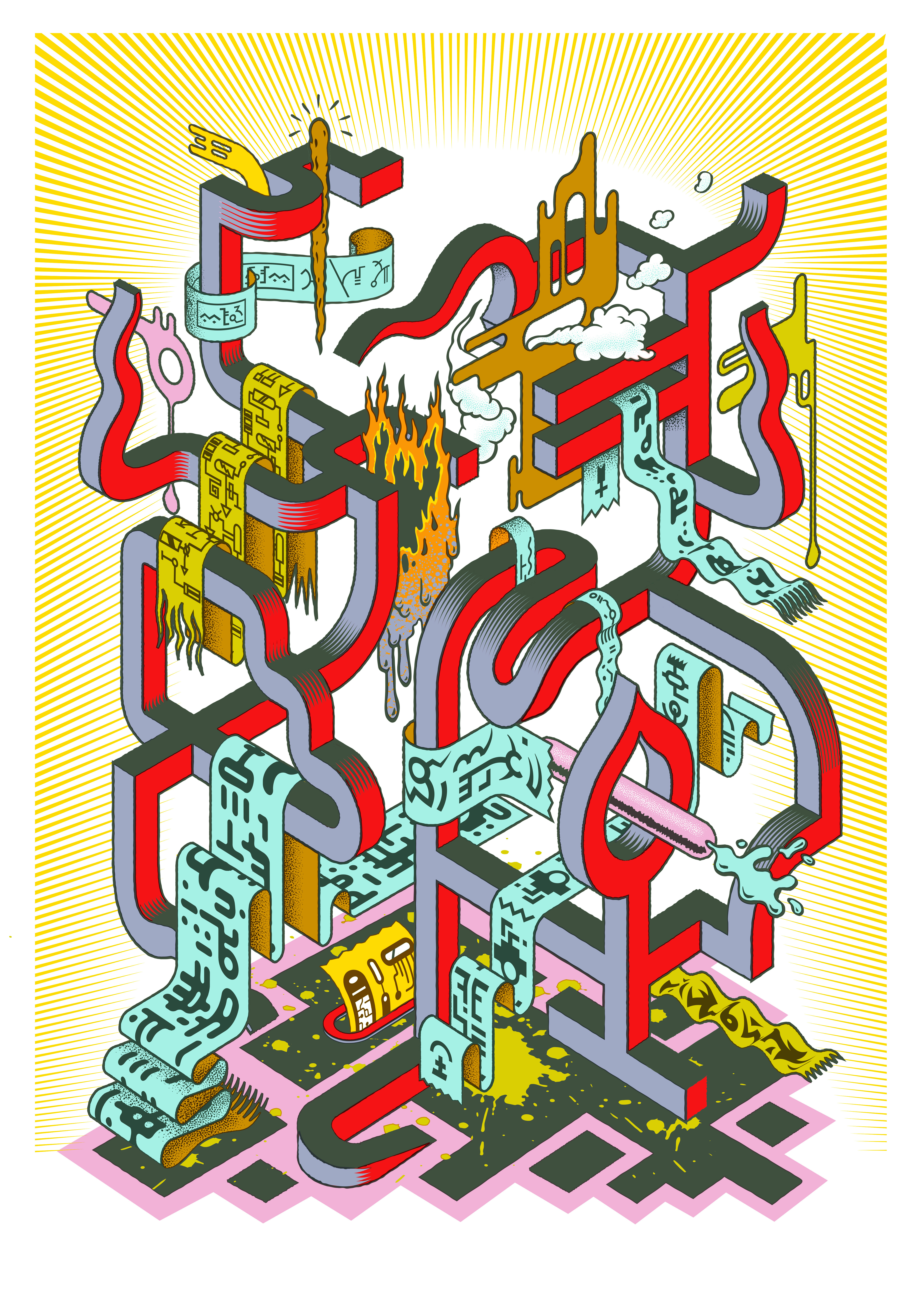 Volkmar Hoppe’s formal and visual language stems primarily from the repertoire of comics and mechanistic construction.