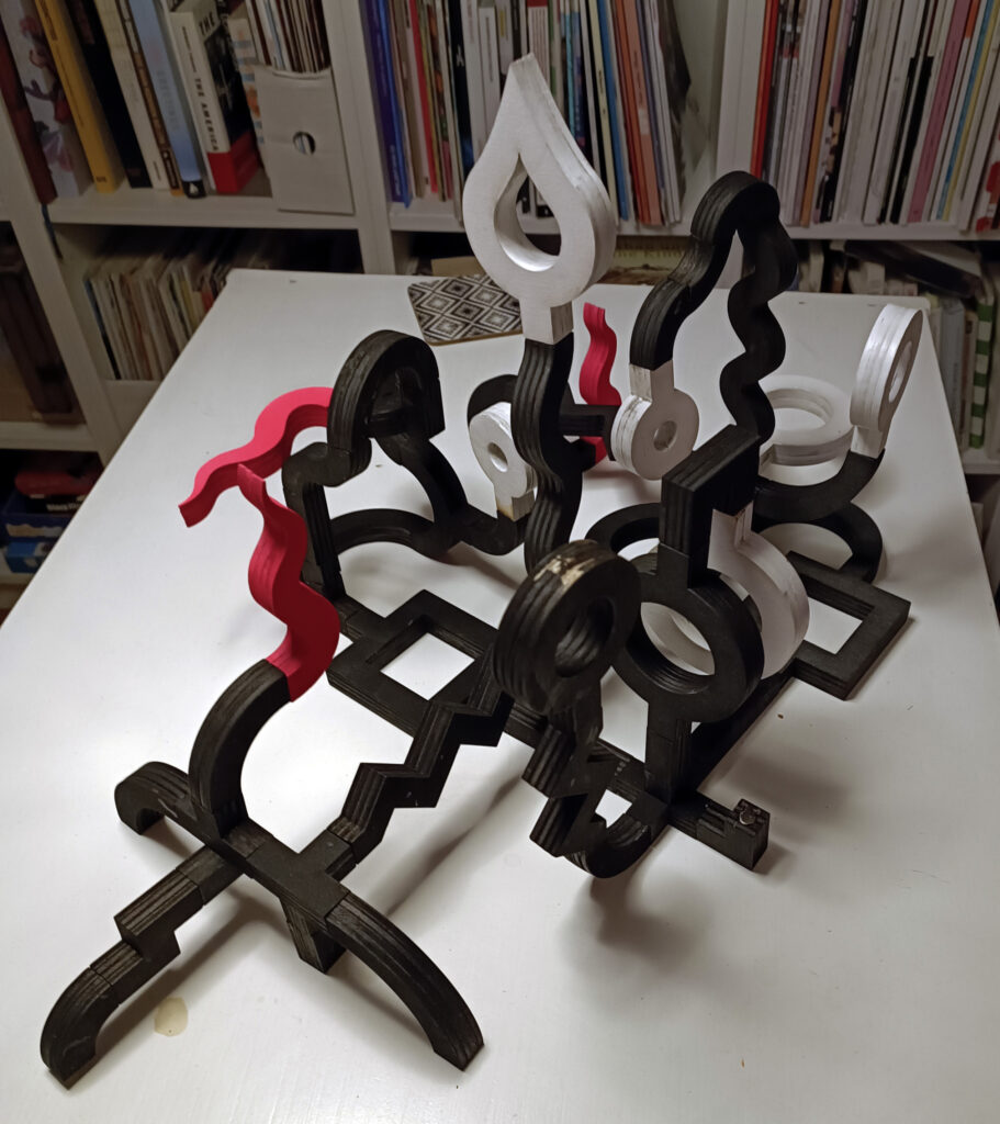 It was under these criteria that the idea for the sculpture ALMOST CERTAIN emerged in 2021. Initially a static image as a silkscreen print, but subsequently realized as a three-dimensional and simultaneously transformable object.